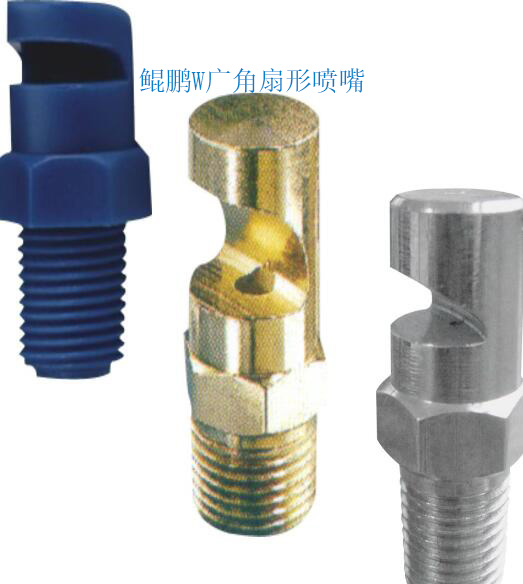 W型廣角噴嘴特點 1、廣角噴嘴能產(chǎn)生中等沖擊力的廣角扇形噴霧形狀,噴出的液霧分布均勻,液滴大小中等 2:圓形噴孔、大而通暢的流道把阻塞現(xiàn)象減少到最低程度。